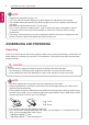 ASSEMBLING AND PREPARING Attaching the TV to a desk (Only LY541*, LY331*, LY341*) (Depending on model) Swivel 20 degrees to the left or right and adjust the angle of the TV to suit your view. The TV should be attached to a desk so it cannot be pulled in a forward/backward direction, potentially causing injury or damaging the product. 20˚ 20˚ A type ) CAUTION yy When adjusting the angle of the product, watch out for your fingers. »» Personal injury may occur if hands or fingers are pinched.