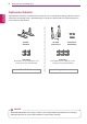 MONTAGE UND VORBEREITUNG Befestigen des Geräts an der Wand (optional) DEUTSCH DEU (Abhängig vom Modell) 1 Setzen Sie die Ringschrauben oder Halte- rungen und Schrauben an der Rückseite des Geräts ein, und befestigen Sie sie. - Wenn an den Ringschraubenpositionen Schrauben eingesetzt sind, entfernen Sie zunächst die Schrauben. 2 Montieren Sie die Wandhalterungen mit den Schrauben an der Wand. Stimmen Sie die Position der Wandhalterung auf die Ringschrauben an der Rückseite des Geräts ab.