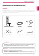 INHALTSVERZEICHNIS DEUTSCH DEU INHALTSVERZEICHNIS 4 5 LIZENZ 24 UNTERHALTUNG 24 - Herstellung der Verbindung mit einem kabelgebundenen Netzwerk MONTAGE UND VORBEREITUNG 25 - Netzwerkstatus 5 Zubehör 26 - Anschließen von USB-Speichergeräten 6 Optionales Zubehör 27 - Durchsuchen von Dateien 7 Teile und Tasten 28 - Wiedergabe von Filmen 8 Anwendung des Montagekabelbinders 32 - Anzeigen von Fotos 8 Anschließen der Lautsprecher 35 - Wiedergabe von Musik 9 Anschließen des Standf