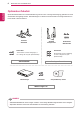 MONTAGE UND VORBEREITUNG Optionales Zubehör DEUTSCH DEU Optionale Zubehörteile zur Produktverbesserung können ohne vorherige Ankündigung geändert und neue Zubehörteile hinzugefügt werden. Die Abbildungen im Handbuch unterscheiden sich möglicherweise von Ihrem Gerät und dem Zubehör. ST-200T Standfuß SP-2000 Lautsprecher Schrauben : Durchmesser 4,0 mm x Steigung 0,7 mm x Länge 10 mm (inkl.