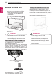 MONTAGE UND VORBEREITUNG Ihr TV-Gerät kann von der Abbildung möglicherweise leicht abweichen. Anbringen des Standfußes 3 4 Stk M4 x 14 3 Stk M4 x 14 1 Standkörper Vorderseite Ständerplatte 2 VORSICHT yy Achten Sie darauf, dass die Schrauben ordnungsgemäß eingesetzt und fest angezogen sind. Wenn sie nicht fest genug angezogen werden, besteht die Gefahr, dass das TVGerät nach der Installation nach vorne kippt.