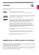 LIZENZEN / ANMERKUNG ZU OPEN SOURCE-SOFTWARE 3 Die unterstützten Lizenzen sind von Modell zu Modell verschieden. Weitere Informationen zu den Lizenzen erhalten Sie unter www.lg.com. Hergestellt unter Lizenz von Dolby Laboratories. „Dolby“ und das Doppel-D-Symbol sind Warenzeichen von Dolby Laboratories. „Die Begriffe HDMI und HDMI High-Definition Multimedia Interface sowie das HDMILogo sind Marken oder eingetragene Marken von HDMI Licensing, LLC in den Vereinigten Staaten und anderen Ländern.