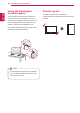 ASSEMBLING AND PREPARING Mounting on a wall CAUTION 10 cm 10 cm 10 cm Disconnect the power before installing or yy moving the monitor. Otherwise electric shock may occur. If you install the Monitor on a ceiling or yy slanted wall, it may fall and result in severe injury. Use an authorized LG wall mount and contact the local dealer or qualified personnel. Do not over tighten the screws as this may yy cause damage to the Monitor and void your warranty.