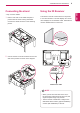 ASSEMBLING AND PREPARING Connecting the stand 9 Using the IR Receiver 1 Place a soft cloth on the table and put the product with the screen facing downward. Connect the stand as shown in the following picture. This allows a remote control sensor to be placed in a custom location. Then that display can control other displays via an RS-232C cable. Install the IR receiver towards the front of the set. 2 Use the screws to secure the stand on the rear side of the product as shown in the diagram.
