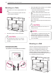 ASSEMBLING AND PREPARING ENG ENGLISH 1 Mounting on a Table 1 Lift and tilt the TV into its upright position on a table. - - Leave a 10 cm (minimum) space from the wall for proper ventilation. 2 3 10 cm 10 cm 10 cm 10 cm Insert and tighten the eye-bolts, or TV brackets and bolts on the back of the TV. - - If there are bolts inserted at the eye-bolts position, remove the bolts first. Mount the wall brackets with the bolts to the wall.