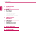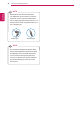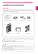 ASSEMBLING AND PREPARING 3 ASSEMBLING AND PREPARING ENG English Unpacking Please check whether all the components are included in the box before using the product. If there are missing components, contact the retail store where you purchased the product. Note that the product and components may look different from those shown here. Owner's Manual/Card Main Unit Power Cord AC/DC Adapter Stand Base Four Screws Mount Bracket CAUTION Only use an approved LG power adapter.