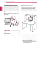 SURINKIMAS IR PARUOŠIMAS Modelis D2242P 75 x 75 M4 4 RW120 D2542P 100 x 200 M4 4 RW120 DĖMESIO Visų pirma ištraukite maitinimo laidą ir tik yy tuomet judinkite arba montuokite monitorių. Antraip gali ištikti elektros smūgis. Jei sumontuosite monitorių ant lubų arba yy pakreiptos sienos, monitorius gali nukristi ir sunkiai sužaloti. Naudokite tik LG patvirtintą prie sienos tviryy tinamą laikiklį ir kreipkitės į vietinį pardavėją arba kvalifikuotus meistrus.