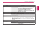 TROUBLESHOOTING 19 Check the following before calling for service. No image appears Is the power cord of the display connected? Is the power indicator light on? Is the power indicator displaying as red? Is the power indicator flickering? Do you see an "OUT OF RANGE" message on the screen? Do you see a "CHECK SIGNAL CABLE" message on the screen? yy Check and see if the power cord is connected properly to the power outlet. yy Press the Power button. yy Adjust the brightness and the contrast.