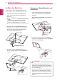 MONTAGE UND VORBEREITUNG Aufbau des Monitors DEUTSCH DEU Anbringen des Standfußsockels 1 Legen Sie den Monitor mit dem Bildschirm nach unten auf einer ebenen, gepolsterten Fläche ab. VORSICHT Trennen von Standfußsockel und Bildschirm 1 Legen Sie den Monitor mit dem Bildschirm nach unten auf einer ebenen, gepolsterten Fläche ab. 2 Entfernen Sie den Standfuß und den Standkörper vom Monitor.