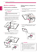 MONTĀŽA UN SAGATAVOŠANA Monitora uzstādīšana LATVIEŠU LV Statīva pamatnes uzstādīšana 1 Novietojiet monitoru ar ekrānu uz leju uz līdzenas un mīkstas virsmas. Statīva pamatnes un korpusa noņemšana 1 Novietojiet monitoru ar ekrānu uz leju uz līdzenas un mīkstas virsmas. 2 Izņemiet statīva pamatni un statīva korpusu no monitora. UZMANĪBU Lai ekrāns netiktu sabojāts, uz virsmas novietojiet putuplastu vai mīkstu aizsargdrānu.