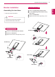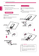 ASSEMBLING AND PREPARING Installing on a wall MODELS VESA (A x B) Stand Screw Required Screw Wall Mount Plate (Optional) 75 x 75 M4 4 DX2743 D2743P 100 x 100 M4 4 RW120 10 cm 10 cm 10 cm 10 cm To install the monitor to the wall, attach a wall mounting bracket (optional) to the back of the monitor. Make sure that the wall mounting bracket is securely fixed to the monitor and to the wall. . 1 Use the screws and wall mounting bracket that comply with the VESA standard.