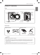 PRODUCT OVERVIEW 9 PRODUCT OVERVIEW ENGLISH Parts Control panel Reversible door Lint filter Leveling feet Power Cord Location (Gas Models) Gas Connection Location (Gas Models) Terminal Block Access Panel (Electric Models) Inlet Valve Exhaust Duct Outlet Accessories Included accessories Y connector Optional accessories Hose Drying rack (3750EL1001A) Side vent kit (sold separately) Kit No. 383EEL9001B NOTE • Visit www.lg.com to purchase accessories.