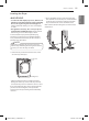 INSTALLATION 17 Reversing the door (cont.) 10. Insert the four decorative screws on the right side. Decorative Hinge Screw ENGLISH wWarning THE DRYER DOOR IS VERY LARGE AND HEAVY. Failure to follow the instructions below can result in damage to the dryer, property damage or injury to persons. • To avoid damage to the dryer or the door, support the door with a stool or box that fits under the door, or have an assistant support the weight of the door.