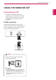 USING THE MONITOR SET 9 USING THE MONITOR SET Your Monitor set supports Plug & Play*. yy *Plug & Play: A PC recognizes a connected device that users connect to a PC and turn on, without device configuration or user intervention. D-SUB connection Transmits analog video from your PC to the Monitor set. Connect the PC and the Monitor set with the supplied D-sub 15 pin signal cable as shown in the following illustrations.