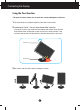 Connecting the Display Using the Pivot function -The pivot function allows you to rotate the screen 90 degrees clockwise. 1. Lift the monitor to its highest height to utilize the Pivot function. 2. Landscape & Portrait : You can rotate the panel 90 o clockwise. Please be cautious and avoid contact between the monitor head and the Stand Base when rotating the screen to access the Pivot function. If the monitor head touches the Stand Base, then the Stand Base could crack. Head section Stand section 3.