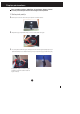 Displeja pievieno‰ana 4. Ja vïlaties izmantot palikt¿a pamatni, pavelciet paliktni uz leju. (Kad stumjat paliktni uz leju, turpiniet spiest pogu.) 5. Izmantojiet monïtu, lai pagrieztu skrvi stat¥va pamatnes aizmugurï pulkste¿rÇd¥tÇja virzienÇ un pievilktu to. 6.. Pïc pamatnes ievieto‰anas uzman¥gi uzceliet monitoru un pavïrsiet to ar priek‰pusi pret sevi. Svar¥gi ·ajÇ attïlÇ attïlots parastais savienojuma modelis. Jsu monitors var at‰˙irties no attïlÇ redzamÇ izstrÇdÇjuma.