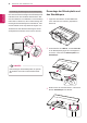 MONTAGE UND VORBEREITUNG Aufbau des Monitors DEUTSCH DEU Montage von Standkörper und Ständerplatte WARNUNG Wenn Sie die Schrauben nicht festziehen, yy kann der Monitor herunterfallen und beschädigt werden. 1 Legen Sie den Monitor mit dem Bildschirm nach unten auf einer ebenen, gepolsterten Fläche ab. 4 Überprüfen Sie die Ausrichtung der Ständerplatte, und montieren Sie sie am Standkörper. Verwenden Sie eine Münze, um die Schraube im Uhrzeigersinn zu drehen und die Ständerplatte zu sichern.