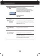Ekraaniinfo (OSD) valimine ning seadistamine Peamenüü Alamenüü Kirjeldus (MUUD) LANGUAGE (Keel) Menüüde ja alamenüüde ekraanikeele valimiseks. ORIGINAL RATIO (ALGNE KUVASUHE) Pildi suuruse reguleerimiseks RTC Kui seadistus on reÏiimil ON (SEES), võ imaldate Reaktsiooniaja juhtimise (RTC) funktsiooni ja vähendate ekraani jä relhelendusi. Kui seadistus on reÏiimil OFF (VÄLJAS), on Reaktsiooniaja juhtimise funktsioon väljas.