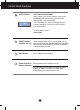 On Screen Display(OSD) Selection and Adjustment Main menu : Move to the upper menu : Decrease : Increase : Select another sub-menu Sub menu Description LANGUAGE To choose the language in which the control names are displayed. ORIGINAL RATIO To adjust the image size. RTC If you set ON, you enable the Response Time Control function and reduce the afterimage of the screen. If you set OFF, you disable the Response Time Control function and operate at panel response time.