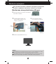 Monitoriaus prijungimas Stovo i‰ardymas 1. Ant plok‰ãio pavir‰iaus padòkite 2. Monitori˜ pastatykite ekranu Ïemyn pagalvòl´ ar mink‰tà skuduròl∞. ant pagalvòlòs ar mink‰to skuduròlio. 3. Paspaukite uωovà viduje. Stovo pagridà nuimkite nuo stovo korpuso.