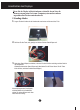 Anschließen des Displays 4. Wenn Sie an der Basis zu benutzen, Bügel nach unten Scharnier. (Sobald Sie ziehen den Körper nach unten stehen, bitte halten Sie die Taste. Wenn Sie die Taste nicht drücken, wird das Produkt beschädigen.) 5. Nehmen Sie eine Münze und drehen Sie die Schraube auf der Rückseite des Standfußes im Uhrzeigersinn fest. 6. Stellen Sie den Monitor nach der Ständerbefestigung mit der Vorderseite nach vorne auf. Wichtig Diese Abbildung zeigt das Verfahren zum Anbringen des Fußes.