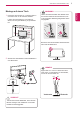 MONTAGE UND VORBEREITUNG Aufbau des Monitors DEUTSCH DEU Montage von Standkörper und Ständerplatte WARNUNG Wenn Sie die Schrauben nicht festziehen, yy kann der Monitor herunterfallen und beschädigt werden. 1 Legen Sie den Monitor mit dem Bildschirm nach unten auf einer ebenen, gepolsterten Fläche ab. 4 Überprüfen Sie die Ausrichtung der Ständerplatte, und montieren Sie sie am Standkörper. Verwenden Sie eine Münze, um die Schraube im Uhrzeigersinn zu drehen und die Ständerplatte zu sichern.