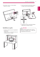 MONTĀŽA UN SAGATAVOŠANA 2 Izskrūvējiet 4 skrūves un izvelciet statīva 2 Savienojiet maiņstrāvas–līdzstrāvas adapteri un strāvas vadu ar sienas kontaktligzdu. DC-IN / 䏳㵎幑‣ 3 Nospiediet pogu Power (barošana) priekšējā slēdžu panelī, lai ieslēgtu barošanu. Uzstādīšana uz galda UZMANĪBU! 1 Paceliet un nolieciet monitoru uz galda stateniskā stāvoklī. Atstājiet vismaz 10 cm atstarpi līdz sienai, lai nodrošinātu pareizu ventilāciju.