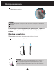 Displeja pievieno‰ana Pirms uzstÇd¥t monitoru, nodro‰iniet, lai monitoram, datora sistïmai un citÇm pievienotajÇm ier¥cïm tiktu izslïgta strÇvas padeve. Pamatnes stat¿a pievieno‰ana 1. Novietojiet monitoru ar ekrÇnu uz leju uz spilvena vai m¥kstas drÇnas. 2. Ievietojiet pamatni pamatnes savienojo‰ajÇ da∫Ç pareizajÇ virzienÇ, kÇ parÇd¥ts attïlÇ. Savienojo‰Ç da∫a Pamatne 3. Pievienojiet monitoru pamatnei, grieÏot skrvi pa labi. Skrve: grieziet, izmantojot skrvgriezi. 4.
