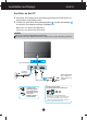 Anschließen des Displays Bevor Sie das Display in Betrieb nehmen, achten Sie darauf, dass die Stromversorgung zum Gerät, zum Computersystem und zu anderen angeschlossenen Geräten unterbrochen ist. Positionieren des Monitors -Stellen Sie den Neigungswinkel nach dem Aufstellen wie gezeigt ein. 1. Stellen Sie die Position des Bildschirms auf unterschiedliche Weise ein, um einen höchstmöglichen Komfort zu erreichen.