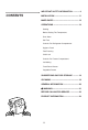 IMPORTANT SAFETY INFORMATION .............. 3 CONTENTS INSTALLATION ................................................... 11 INNER PARTS ..................................................... 12 OPERATIONS ...................................................... 13 Starting Before Setting The Temperature Door Alarm Self Test Controls For Refrigerator Compartment Hygiene Fresh Fast Freezing Child Lock Controls For Freezer Compartment Ice Making Fresh Room Drawer Vegetable Drawer SUGGESTIONS ON FOOD STORAGE ...