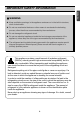 IMPORTANT SAFETY INFORMATION Do not put any living animal in the refrigerator. When the power cord is damaged, let a technician to replace it to remove the danger of an accident. Technician Do not use products such as grinding sponge, brush, iron, or even special products to clean stainless steel, soap products such as alcohol, kerosene, gasoline, wax, or solvent, or strong chemicals such as chlorine, detergent, or vinegar, for the purpose of gloss.