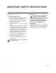 IMPORTANT SAFETY INSTRUCTIONS (Continued from previous page) 13. Damage Requiring Service Unplug this product from the wall power outlet and refer servicing to qualified service personnel under the following conditions: a. If liquid has been spilled, or objects have fallen into the product. b. If the product has been exposed to rain or water. c. If the product does not operate normally by following the operating instructions.