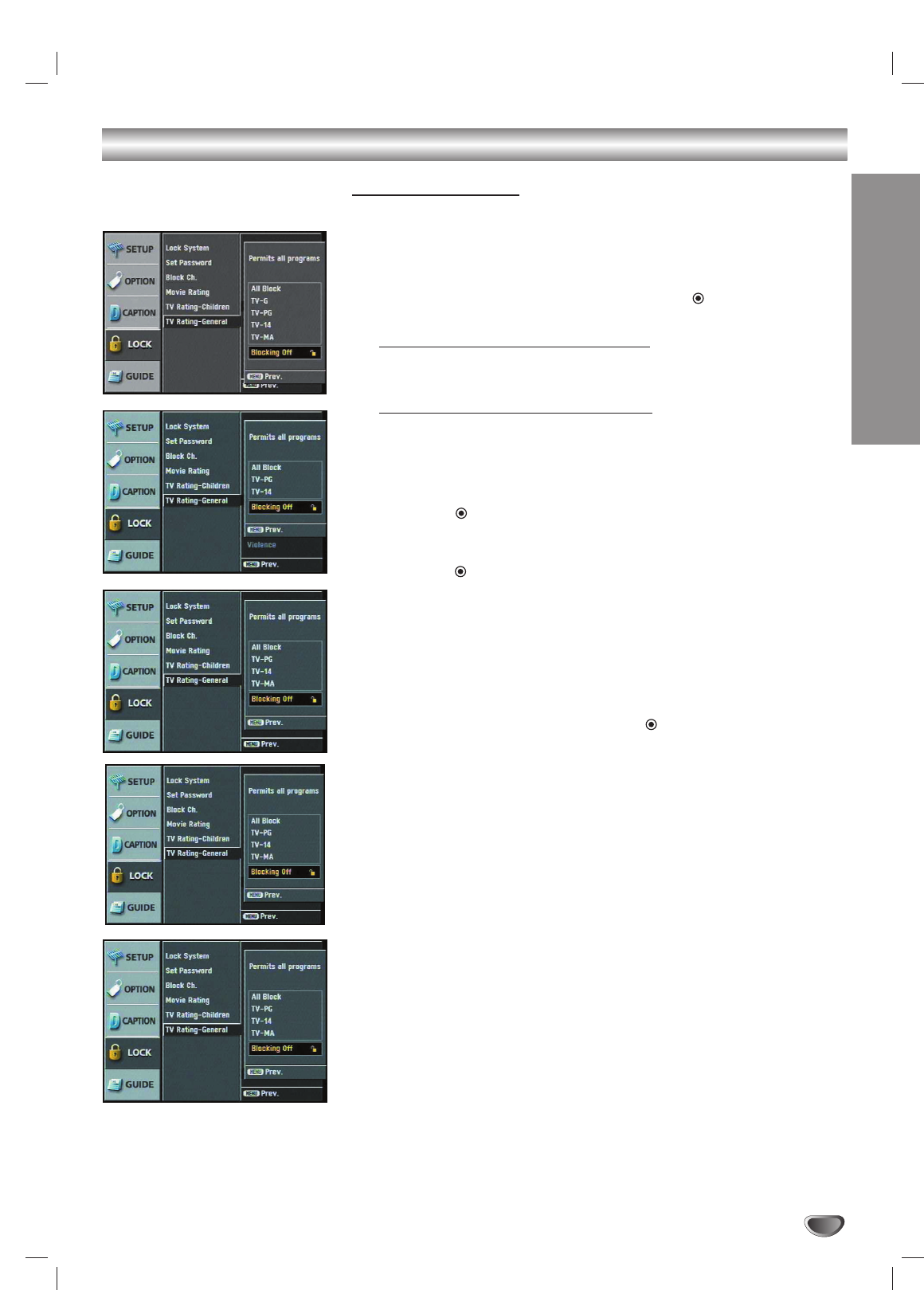 Lock (Parental Control) Menu Options (Continued)