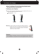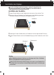 Anschließen des Displays So entfernen Sie den Ständer: 1. Legen Sie ein Kissen oder ein weiches 2. Legen Sie den Monitor flach auf das Kissen bzw. das weiche Tuch. Tuch auf eine ebene Fläche. Kopfteil Ständersoc kel 3. Halten Sie das Produkt wie abgebildet und heben Sie den Ständer leicht an. 4. Halten Sie das Produkt wie abgebildet und drehen Sie den Ständersockel in Pfeilrichtung, bis Sie ein Klicken hören. 5. Ziehen Sie den Ständer heraus.