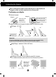 Connecting the Display Before setting up the monitor, ensure that the power to the monitor, the computer system, and other attached devices is turned off. Positioning your display 1. Remove the tape. Put the set as the picture below to remove the tape. Do not remove the tape with the set up side down as the The base part may spring up to injure your hand. 2. Adjust the position of the panel in various ways for maximum comfort.