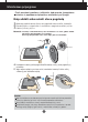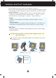 Monitoriaus prijungimas Prie‰ pastatant monitori˜, ∞sitikinkite, kad aparato, kompiuterio sistemos ir papildomos aparatros maitinimai yra i‰jungti. Monitoriaus pasvirimo kampo reguliavimas 1. Reguliuodami monitoriaus pasvirimo kampà, suraskite geriausià padòt∞. Pokrypio kampas : -5°~25° Pasukimas : 350° 350 Auk‰tis: ne daugiau kaip 3,15 colio (80 mm) 80.0mm Pirmiausiai i‰traukite fiksavimo kai‰t∞. Gulsãiasis ir statmenasis vaizdas: Plok‰t´ galima sukti 90‡ kampu pagal laikrod˛io rodykl.