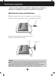 Monitoriaus prijungimas Prie‰ pastatant monitori˜, ∞sitikinkite, kad aparato, kompiuterio sistemos ir papildomos aparatros maitinimai yra i‰jungti. Monitoriaus stovo pritvirtinimas 1. Monitori˜ padòkite ekranu Ïemyn ant pagalvòlòs arba mink‰to skuduròlio. 2. Patikrinkite stovas krypt∞ ir prijunkite j∞ prie vyriai, kaip parodyta paveikslòlyje. Vyriai Stovas 3. Patikrinkite stovo pagrindas krypt∞ ir prijunkite j∞ prie stovas. 4. Dabar atsargiai pakelkite monitori˜.