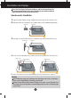 Anschließen des Displays Bevor Sie das Display in Betrieb nehmen, achten Sie darauf, dass die Stromversorgung zum Gerät, zum Computersystem und zu anderen angeschlossenen Geräten unterbrochen ist. Montieren des Standfußes 1. Legen Sie den Monitor mit der Vorderseite nach unten auf ein weiches Tuch. 2. Montieren Sie das Ständerteil am Produkt in der in der Abbildung gezeigten Ständerteil Gelenkteil 3. Befestigen Sie den Ständersockel am Ständerteil in der entsprechenden Richtung.