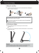 How to Install the VESA Standard wall mounting This monitor meets VESA-compliant mounting interface pad specifications. 1 2 3 ■Face the front of the monitor and push the monitor backwards, following the sequence shown in the picture. ■Put the monitor on a soft cloth or cushion with its front facing downward. ■Turn the 4 screws tight to the end of the standbase. ■Install the VESA standrad wall mounting.