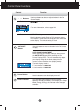 On Screen Display(OSD) Selection and Adjustment Main menu Sub menu Description PICTURE PICTURE BRIGHTNESS To adjust the brightness of the screen. To adjust the contrast of the screen. CONTRAST Set your own gamma value. : -50/0/50 On the monitor, high gamma values display whitish images and low gamma values display high contrast images. GAMMA MENU : Exit - : Decrease + : Increase SET : Select another sub-menu COLOR PRESET Select the screen color. • 6500K: Slightly reddish white.
