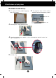 Monitoriaus prijungimas Noròdami nuimti stovo pagrindà: 1. stovà: kelkite j∞ lyg spaustumòte ant stovo esanãià rodykl´, o kita ranka tuo metu prilaikykite stovo pagrindà. 2. Stovo korpusas ir stovo pagrindas sòkmingai atskirti.