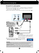Monitoriaus prijungimas Prie‰ pastatant monitori˜, ∞sitikinkite, kad aparato, kompiuterio sistemos ir papildomos aparatros maitinimai yra i‰jungti. Monitoriaus pasvirimo kampo reguliavimas 1. Reguliuodami monitoriaus pasvirimo kampà, suraskite geriausià padòt∞. Pokrypio kampas : -5°~20° 20 Dòmesio: Nustatydami ekrano kampà, neki‰kite pir‰t˜ tarp monitoriaus apaãios ir stovo. Galite susiÏeisti pir‰tà(-us).