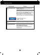 Fehleranalyse Überprüfen Sie folgende Punkte, bevor Sie sich an den Kundendienst wenden. Kein Bild zu sehen • Überprüfen Sie das Netzkabel auf richtigen Sitz ● Ist das Netzkabel des Displays angeschlossen? am Display und and der Stechdose. ● Leuchtet die Betriebsanzeige? • Drücken Sie den Ein-/Ausschalter. • Stellen Sie die Helligkeit und den Kontrast ein.