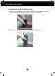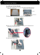 Installieren der Halterung für die Wandmontage Dieses Produkt erfüllt die Anforderungen für Wandhalterungen sowie für das Wechselgerät. 1. Legen Sie ein Kissen oder ein weiches 2. Tuch auf eine ebene Fläche. Legen Sie den Monitor flach auf das Kissen bzw. das weiche Tuch. Kopfteil Ständersockel 3. Halten Sie das Produkt wie abgebildet und heben Sie den Ständer leicht an. 4. Halten Sie das Produkt wie abgebildet und drehen Sie den Ständersockel in Pfeilrichtung, bis Sie ein Klicken hören. 5.