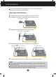Kuvari ühendamine Statiivi lahtivõtmine 1. Asetage tasasele pinnale 2. Asetage monitor ekraaniga pehmendus või riie. 3. allpool pehmendusele või riidele. Libistage dekoratiivkaabli kate statiivi korpusest välja. 4. Lükake link sisse ning eemaldage statiivi alus korpusest. 5. Tõmmake statiivi kergelt, et lahutada seda ‰arniiri korpusest.