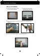 Anschließen des Displays Abbauen des Standfußes 1. Legen Sie ein Kissen oder ein weiches 2. Legen Sie den Monitor mit der Tuch auf eine ebene Oberfläche. Vorderseite nach unten auf das Kissen oder das weiche Tuch. 3. Drücken Sie die Sperrlasche nach innen und nehmen Sie den Ständersockel vom Ständerteil ab. 4. Ziehen Sie das Ständerteil leicht, um es vom Scharnier zu lösen.