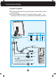Connecting the Display Folding the stand base 1. Face the front of the monitor and push the monitor backwards, following the sequence shown in the picture. This illustration depicts the general model of connection. Your monitor may differ from the items shown in the picture. Do not touch or apply force to the monitor screen while expanding or folding the stand base. Positioning your display 1. Adjust the position of the panel in various ways for maximum comfort. Tilt Range :0˚~30 2.