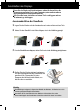 Anschließen des Displays Bevor Sie das Display in Betrieb nehmen, achten Sie darauf, dass die Stromversorgung zum Gerät, zum Computersystem und zu anderen angeschlossenen Geräten unterbrochen ist. Den Standfuß zum Aufstellen auf einem Tisch ausklappen und zur Wandmontage einklappen. Auseinanderfalten der Standbasis 1. Legen Sie den Monitor mit der Vorderseite nach unten auf ein weiches Tuch. 2. Heben Sie den Standfuß in der Reihenfolgean, wie in der Abbildung gezeigt. 3.
