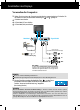Installieren der Halterung für die Wandmontage Dieser Monitor erfüllt die Anforderungen für Wand- oder Wechselhalterungen. 1. Legen Sie den Monitor mit der Vorderseite nach unten auf ein Kissen oder ein weiches Tuch. Halten Sie die Kappe der Scharnierabdeckung fest und ziehen Sie sie zum Abnehmen nach oben (siehe Abbildung). 1 2 1 2 Kappe der Scharnierabdeckung 2. Lösen Sie den Standfußsockel mit einem Schraubenzieher und nehmen Sie ihn ab. 3. Installieren der Halterung für die Wandmontage.