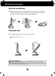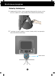 Monitoriaus prijungimas Stovelio sulenkimas 1. Monitori˜ pastatykite taip, kad ekranas bt˜ nukreiptas ∞ jus ir atlenkite monitori˜ atgal, kaip parodyta Ïemiau iliustracijoje. Bkite rpestingi ir atlenkdami monitori˜ atgal, neprispauskite savo rank˜. Pavertimo riba 1. Øsitikinkite, kad panelis nustatytas patogiu kampu.